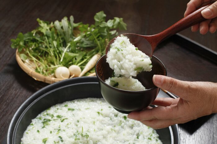 1月7日は旧暦の「人日(じんじつ)の節句」。1年の無病息災を祈り、7種類の野菜が入った「七草がゆ」を食べる風習がある。正月料理で疲れた胃を休め、不足しがちな栄養を補う効果もあるといわれている。