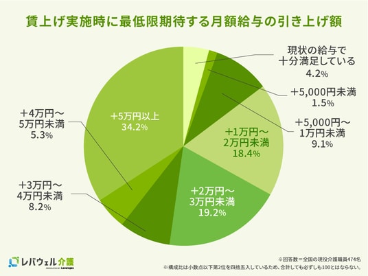 - 介護職員の約6割が賃上げに「期待」、希望額は「月5万円以上」が最多