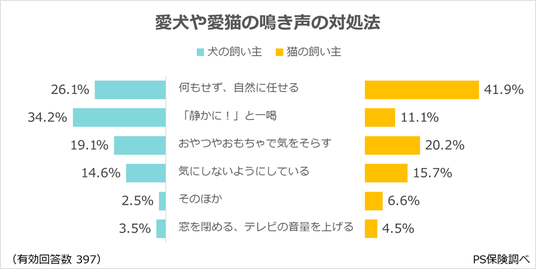 ・犬の飼い主:「『静かに!』と一喝」(34.2%)が最多。しつけ重視の対処が主流。