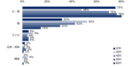 【図7】家族からの転職反対を受けた方に伺います。誰から反対を受けましたか?(複数回答可/年代別)