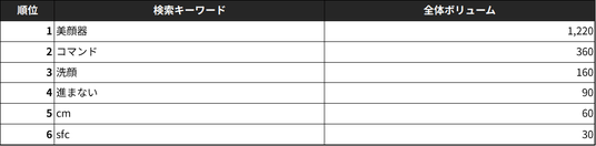 11月に「DISM」と一緒に検索されたキーワードを見ると、「美顔器」が1位となっており、「洗顔」や「CM」も上位に入っています。岩田さんのアンバサダー就任と新CMの公開が、ブランドへの関心を高め、具体的な検索行動へと繋がったことが分かります。