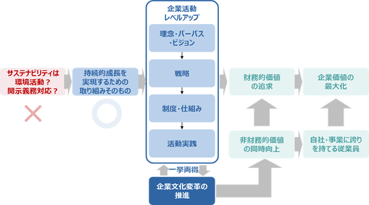 サステナビリティ経営は単なる環境活動や開示義務対応ではなく、持続的成長を実現するための取り組みそのものです。