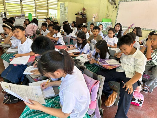 フィリピンの教育現場では、平時から教室不足や教材不足、教員不足が慢性化しています。多くの公立学校では、1つの教室に50人以上の児童が詰め込まれ、教科書を複数人で共有して授業を受ける状況も珍しくありません。