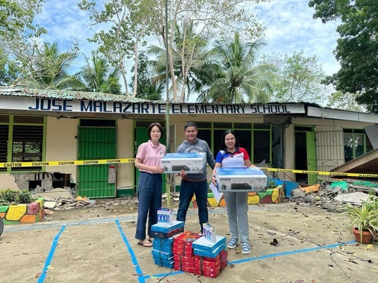 地震で校舎が倒壊した学校にプリンターを寄贈