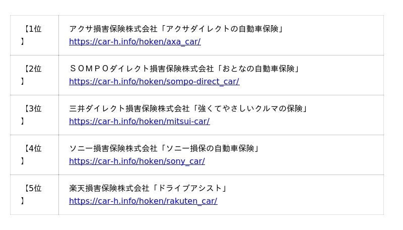 《株式会社エレメント》(本社:神奈川県川崎市、代表取締役:近藤勉)は、自動車保険比較サイト 「自動車保険STATION( https://car-h.info/)」において、【2026年1月最新版】自動車保険おすすめ人気ランキングTOP5を発表いたしました。