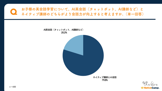 近年はAIを活用した英会話アプリが普及し、手軽に英語に触れられる環境が整いつつありますが、多くの保護者が「会話力を伸ばすには、人との対話が欠かせない」と考えていることがわかりました。