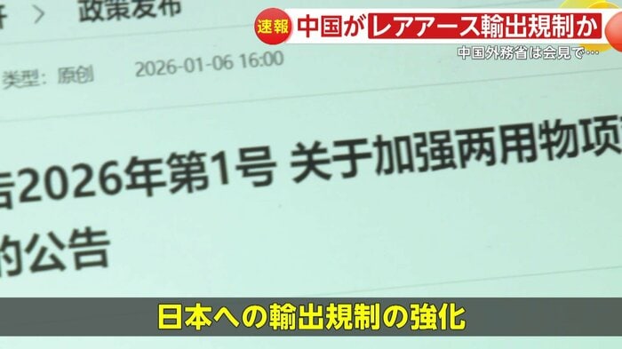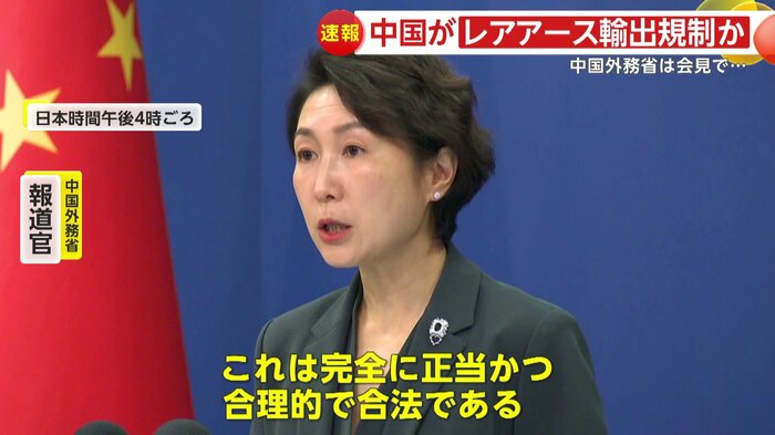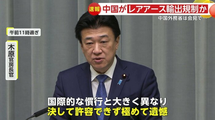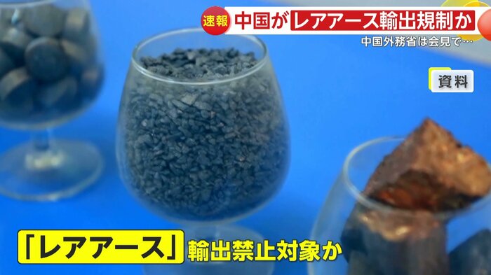 中国側は具体的な品目を明らかにしていないが、希少な鉱物資源「レアアース」が輸出禁止の対象となる可能性もある。