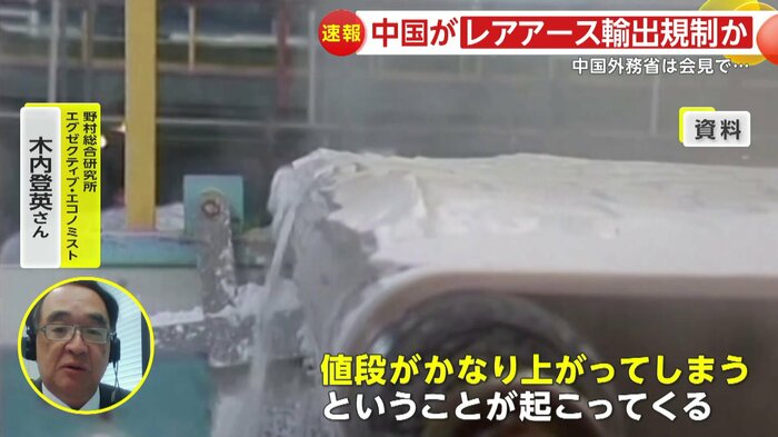 まずレアアース自体の価格が上がると思いますし、EV(電気自動車)とかスマホなどが、買うことができたとしても値段がかなり上がってしまうということが起こってくる。物価高が加速する可能性が出てくると思いますね。