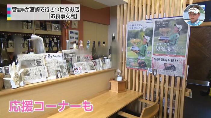 西岡さんは去年、店内に菅プロの応援コーナーを作った。最初は新聞の記事を見つけて、ひとつ。また見つけて、ふたつと、新聞記事を飾っていったところ、菅プロが活躍してどんどん新聞に載るので、コーナーが大きくなっていったという。