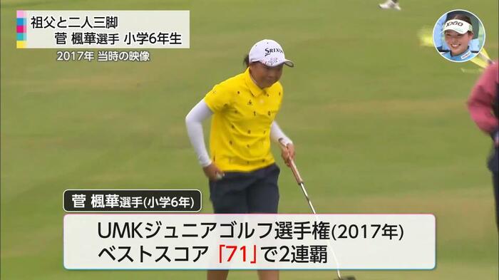 2017年の「UMKジュニアゴルフ選手権」では、小学6年生ながらベストスコア「71」を記録し、大会2連覇を達成している。