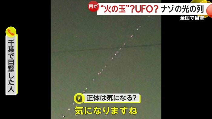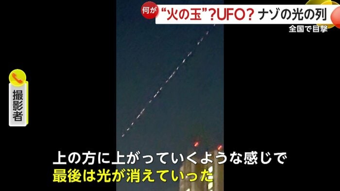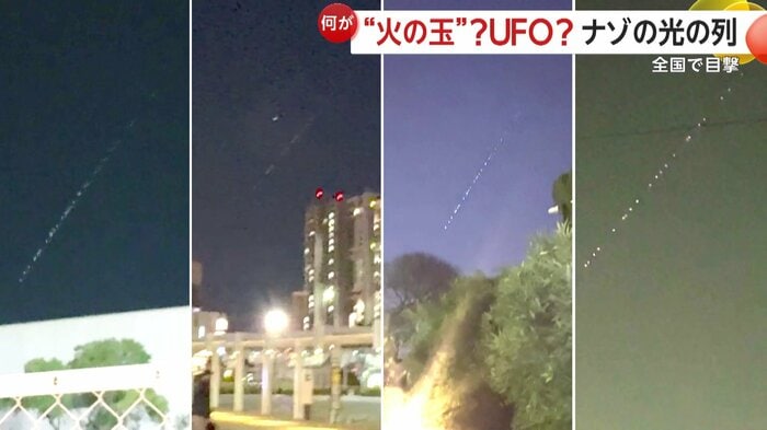日本各地で目撃された、規則正しく並ぶ光の列。