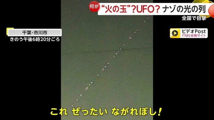この光の列は、同じ時間帯に千葉・市川市の上空でも見られた。