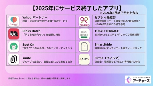 2025年にサービスを終了したマッチングアプリ(終了予定含む)