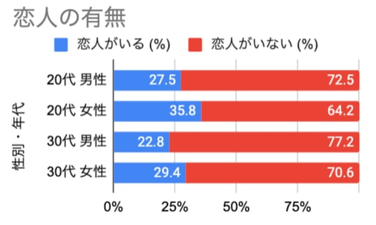 20代30代の恋人の有無 リクルートブライダル総研『恋愛・結婚調査2023』