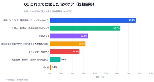 図1:Q1 これまでに試した毛穴ケア(複数回答)