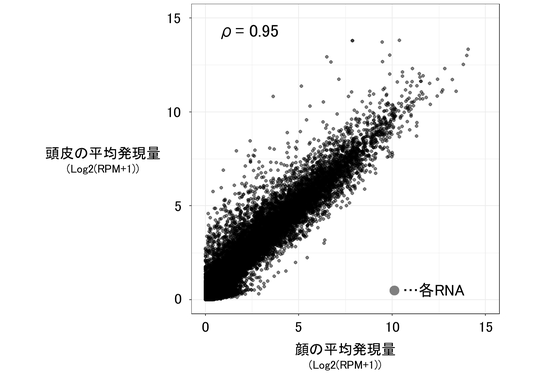 顔と頭皮の皮脂RNA発現パターンの類似性