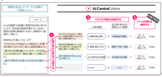 あいおいニッセイ同和損害保険株式会社では、お客さまからの様々な声を元とした定量評価や傾向把握を行い、ファクトに基づいた施策を講じることで「信頼獲得」や「選ばれる損害保険会社」を目指しており、肌感覚として把握する他なかった非定型データを、確信をもって施策検討や効果測定に役立てるための礎となる打ち手を探していました。