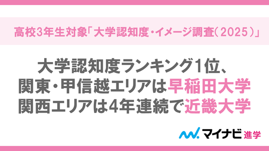 株式会社マイナビ(本社:東京都千代田区、代表取締役 社長執行役員:粟井俊介)が運営する、高校生の進路選択に関する調査研究・情報発信専門サイト『マイナビ進学総合研究所』(https://souken.shingaku.mynavi.jp/) は、2026年3月卒業予定の全国の高校3年生を対象とした「大学認知度・イメージ調査(2025)」を発表しました。