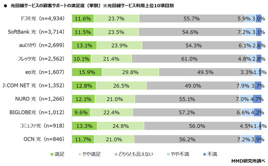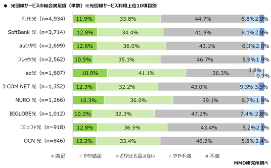 光回線サービスの総合満足度は「eo光」がトップ、次いで「NURO 光」「コミュファ光」