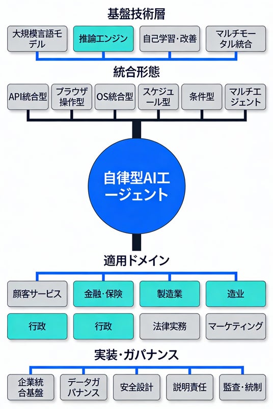 自律型AIエージェントは、単なる自動化ツールから、複雑な環境での意思決定と実行を担う自律的行為主体へと進化している。人間による都度の指示を待つのではなく、目標に基づいて自律的に判断し、外部システムと連携して業務を遂行するアーキテクチャが実装段階に入っている。
