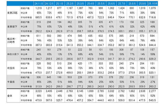 不動産ビッグデータとAI等のテクノロジーを活用し、不動産マーケティングプラットフォームを提供する株式会社マーキュリー(本社:東京都新宿区 代表取締役:陣 隆浩、証券コード5025、以下「当社」)は、独自調査による新築マンション動向を発表致します。今月は、2025年10月度分譲実績データです。
