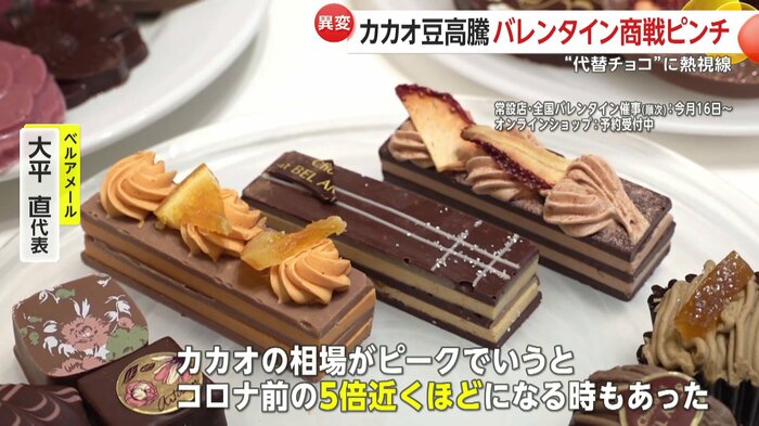 店の客からは「(カカオ高騰は)ちょっと悲しいけど、物価高騰しているので致し方無いのかなと思う」「ちょっと贅沢してでもおいしいものを食べたい派なので、ちょっと高いところで1つ食べて幸せになる方がいい」といった声が聞かれた。