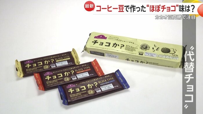 こちらの商品は、高騰しているカカオ豆の代わりにコーヒー豆を使って作られたという。
