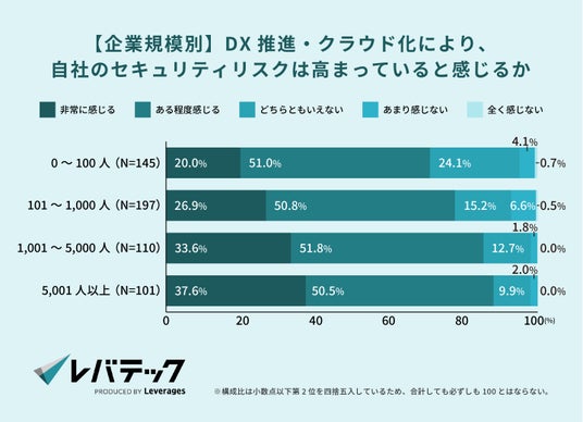 さらに企業規模別にみると、従業員数が多い企業ほどセキュリティリスクの高まりを感じている割合が高い傾向が見られました。