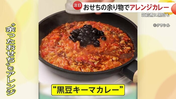 レシピの動画サイト「クラシル」で検索数が急増しているのは、余ったおせち料理をアレンジした“黒豆キーマカレー”。