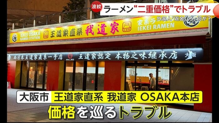そうした中、今回、大阪市のラーメン店で発生した外国人観光客との“二重価格”を巡るトラブル。
