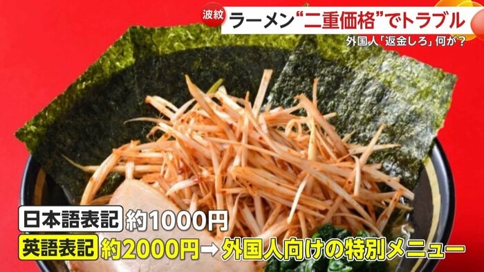 ただ、この「二重価格」をめぐり、大阪の人気ラーメン店で外国人観光客とトラブルに発展した。
