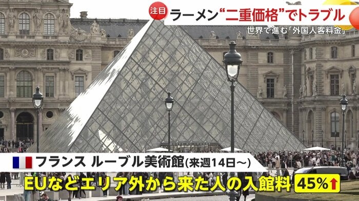 さらに、来館者数が世界最多のフランス・ルーブル美術館は1月14日から二重価格を導入し、EUなどのエリア外から来た人の入館料を45%引き上げると発表した。