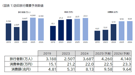 2026年は、年間を平均したドル円レート(対USドル)が2025年と大きく変わらない1ドル=150円前後になると想定しており、この前提のもとでは、日本国内の旅行コストの上昇による単価押し上げ効果が継続し、消費単価は上昇が続くと想定しています。