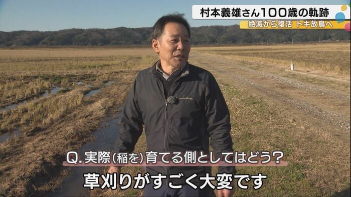 トキの放鳥に向け協力してきた農家の濱田栄治さんは、「トラクターでおこしたところを走って、わだちをわざと作って、トキが餌を取れる環境づくりをしています」と語る。