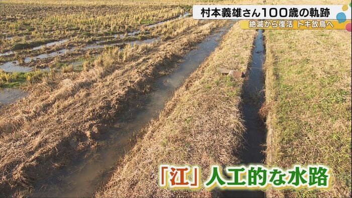 トキの餌場を作るため、餌となるタニシやドジョウが生息しやすい「江」を作り、農薬や除草剤の使用量も通常の半分に減らした米作りを進めてきた。