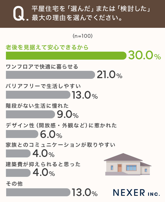 株式会社NEXER・平屋住宅の選択理由と住み心地に関する調査