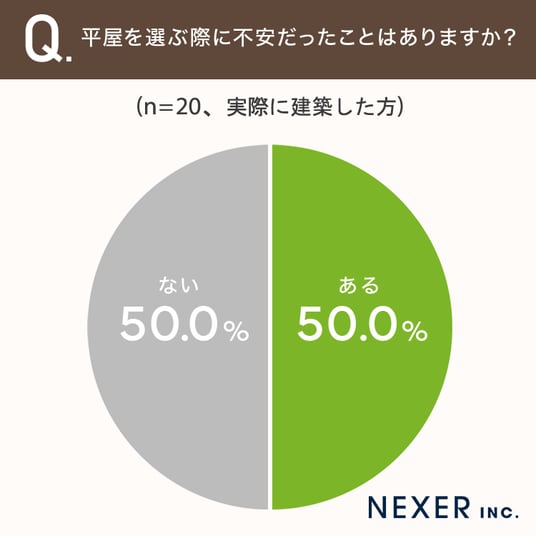 半数の方が、平屋を選ぶ際に不安だったことが「ある」と回答しています。