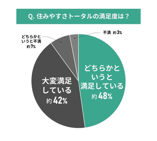 住みやすさの総合評価では約90%の住民が満足と回答しました。個別項目で課題があっても、全体的には高い住民満足度を示しています。
