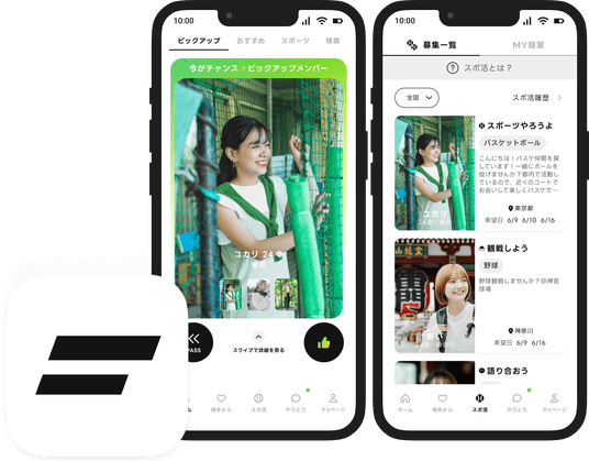 ご自身が好き・得意なスポーツをアピールしやすいプロフィール機能や、気軽にスポーツデートのお誘いができる「スポ活」機能などを中心として、スポーツ好きな皆さまがご自身の魅力をアピールしやすい出会いの場をご用意しております。