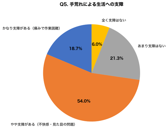 設問:手荒れ・あかぎれで日常生活にどの程度支障がありますか?