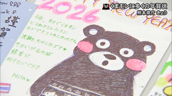 2025年にくまモンが2度訪れたタイから届いた年賀状には「くまモンに会えてうれしかった。熊本に行きたい」などと日本語で書かれていた。