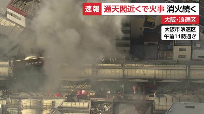 9日午前10時40分ごろ、通天閣に近い大阪市浪速区恵美須東で通行人の男性から「建物から煙が出ている」と消防に通報があった。