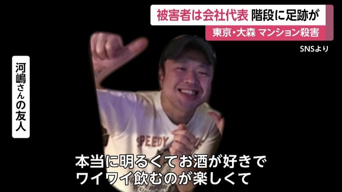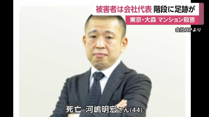 東京・大田区のマンションで8日、男性が殺害されているのが見つかった事件で、被害者の男性が44歳の会社の代表であることが分かった。現場のマンションの非常階段には血が付いた足跡が残されていて、警視庁は犯人が非常階段から逃走した可能性があるとみて調べている。