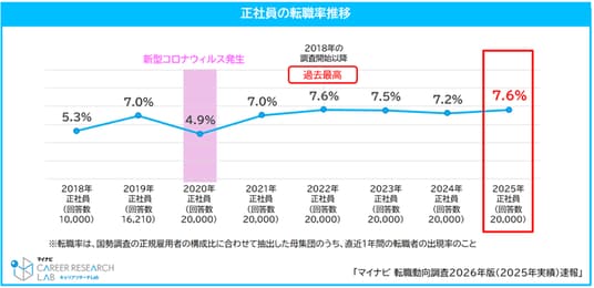◆2025年の正社員の転職率は7.6%で過去最高水準