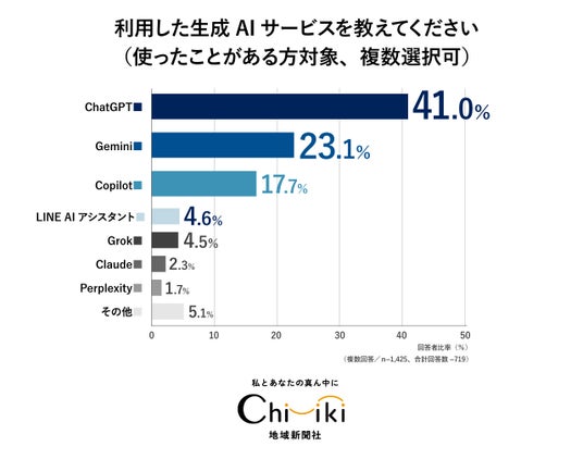 株式会社地域新聞社(本社:千葉県八千代市、代表取締役:細谷 佳津年、証券コード:2164、以下「当社」といいます。)は、『ちいき新聞』2026年3月6日号にて企画している「生成AI特集号」のため、地域新聞社メルマガ会員56,625名を対象に生成AIに関するアンケートを行い、1,425名から有効回答をいただきました(※)。