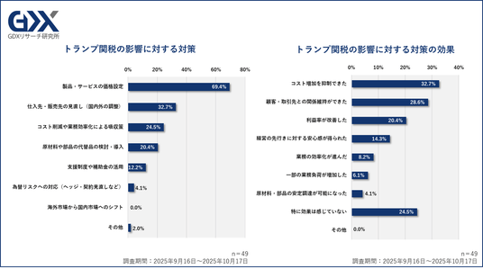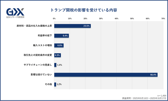1.トランプ関税によって「原材料・部品の仕入れ価格の上昇」の影響を受けている企業は23.5%