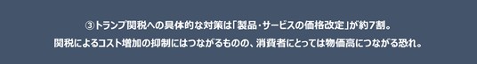 3.トランプ関税への具体的な対策は「製品・サービスの価格改定」が約7割。