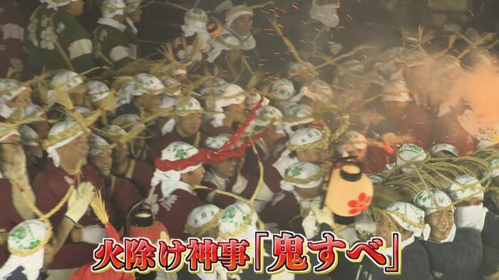 一方、同じ夜、福岡・太宰府市でも冬の夜空を炎が焦がした。「鬼じゃー」と叫びながら炎と煙で鬼を追い払い1年の無病息災と開運を願う恒例の火除けの神事『鬼すべ』だ。