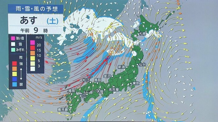 そう、南の風が入ってくるということは春一番が吹くような低気圧が非常に発達しているということを示しています。