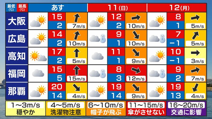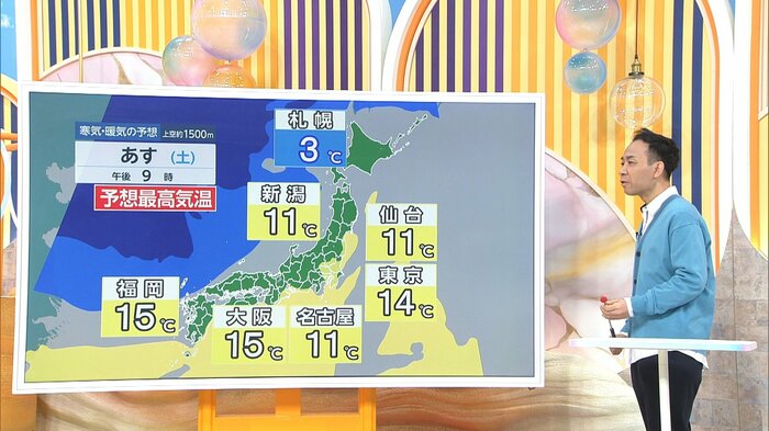 (10日は)東京14℃まで上がるんですけど、11日朝は1℃まで下がっています。名古屋は-1℃。大阪も2℃ということで、この寒暖差がすごい。